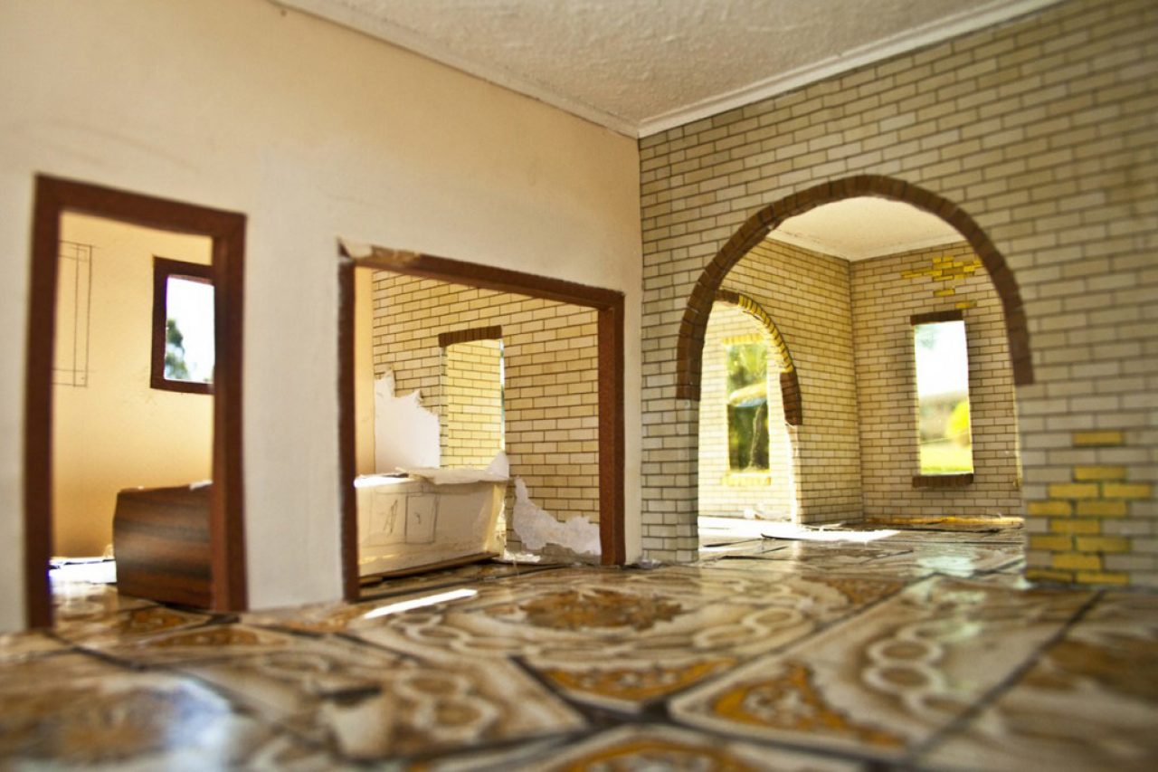 Anna Carey’s works Brick Archway 2010 and Wood Veneer 2010 never fail to deceive—that is, we are always convinced they are, other than what they are. Even though our disbelief is quickly shattered, we still get caught up in the desire for them to be real—even for a moment. Carey says her fascination with mid-twentieth century architecture developed growing up in the Gold Coast with a love of local iconic architectural styles. It was only some years later travelling to Los Angeles and Las Vegas that she discovered the source of the Gold Coast’s architectural flamboyance. So that what she always believed was real, and local was only ever a model of something else. Perhaps this is the pathos we feel in these works, but there is also the joy of the make believe.