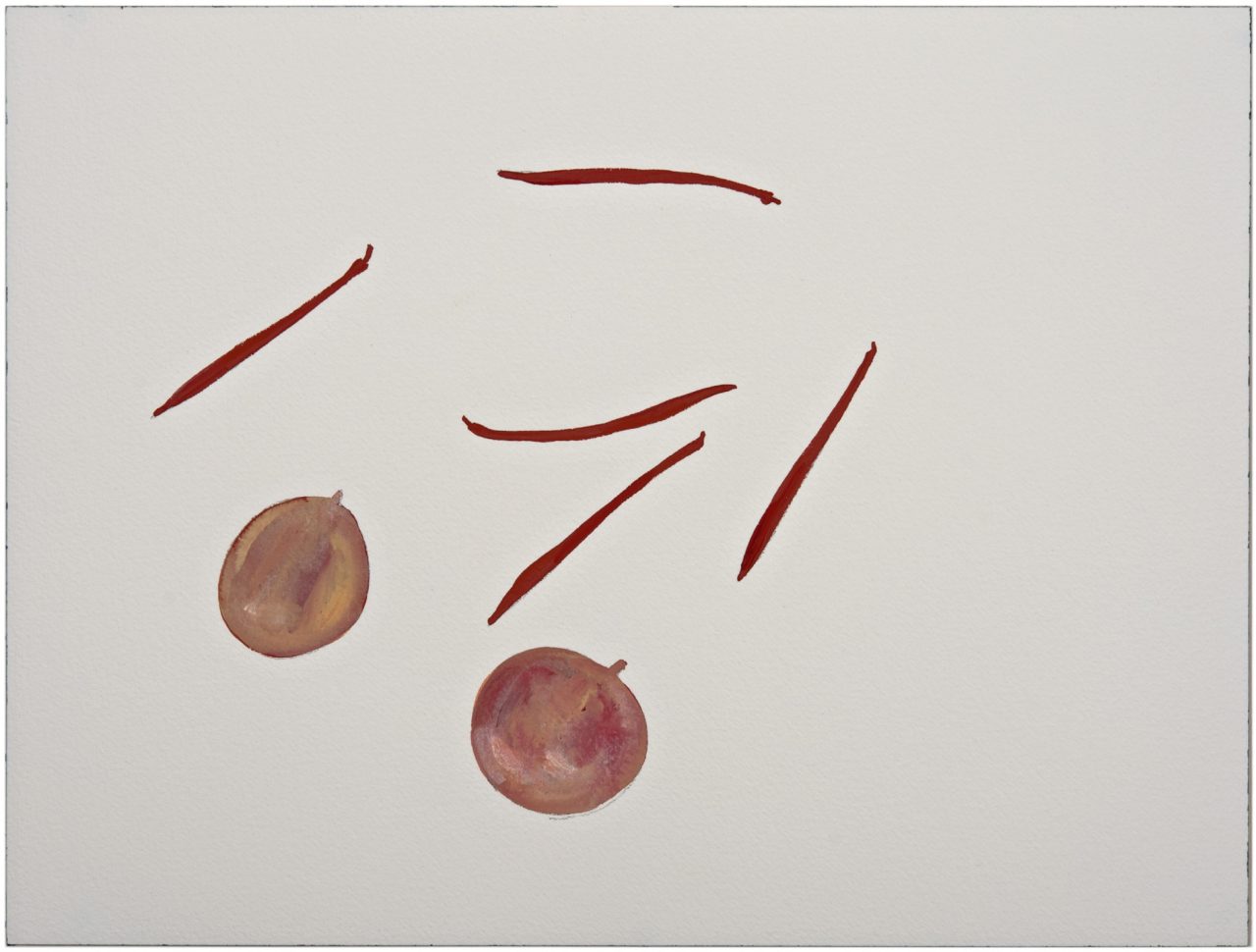 Fiona Foley a Badtjala woman whose country is Fraser Island works across media from photography, sculpture and installation, printmaking and video. She is particularly known for her large scale and arresting public art works like Witnessing to Silence Brisbane Magistrates Court 2004, Black Opium State Library of Queensland 2006, Redfern Park Playground 2008, and Sugar Cubes Mackay 2009 (and there are many more). The gouache and graphite works Flotsam and Jetsam #16, 2011 and Flotsam and Jetsam #22, 2011 form a contrast to many of Foley’s works in scale and medium, though not necessarily in content. These flotsam and jetsam are mangrove seedpods from Fraser Island, the symbolic and metaphoric source of much of Foley’s work. However flotsam and jetsam have a derogatory use as well, often directed towards Aboriginal people. While appreciating the delicate beauty of the rendered painted forms indeed washed up on the beaches of Fraser Island, we are immediately confronted with the connotation of flotsam and jetsam meaning objects cut adrift, often as worthless matter.